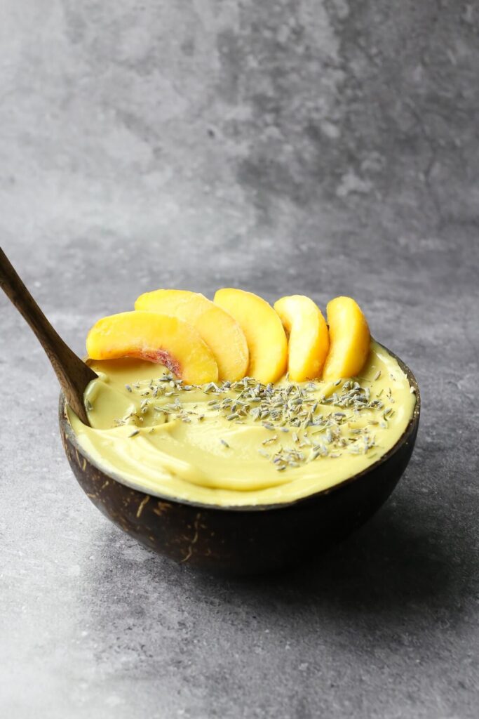 For an extra sweet peach smoothie bowl add 1 or 2 tablespoons of agave syrup to the blender. Other options for adding sweetness are adding a couple of medjool dates or 1 tablespoon of coconut sugar.
